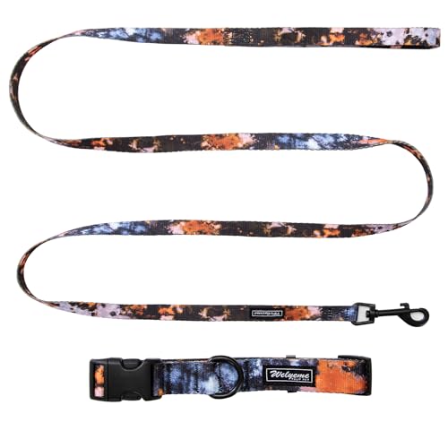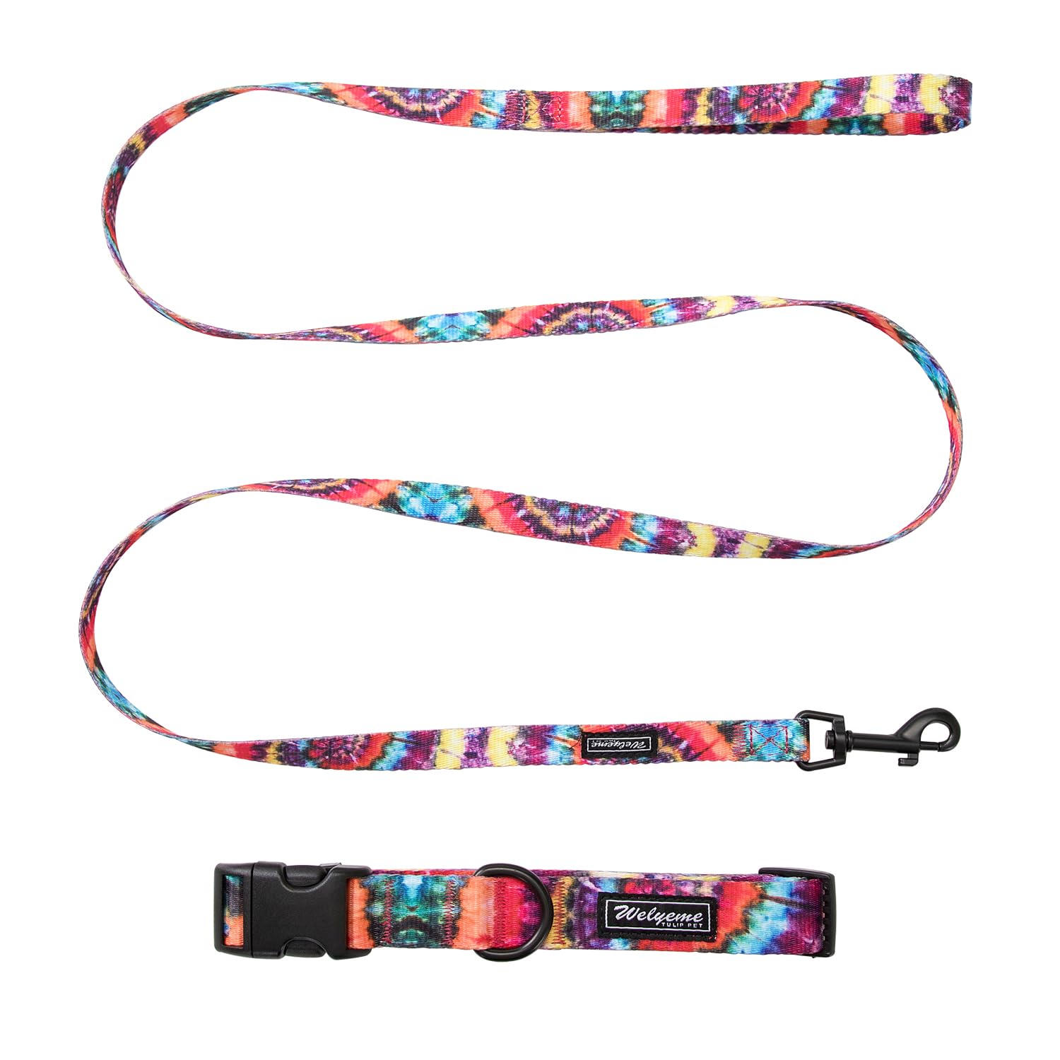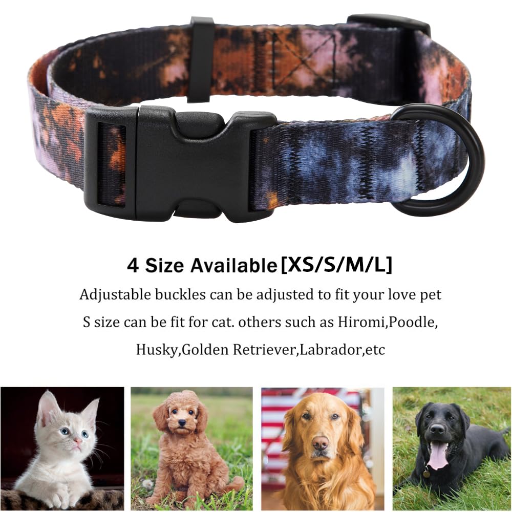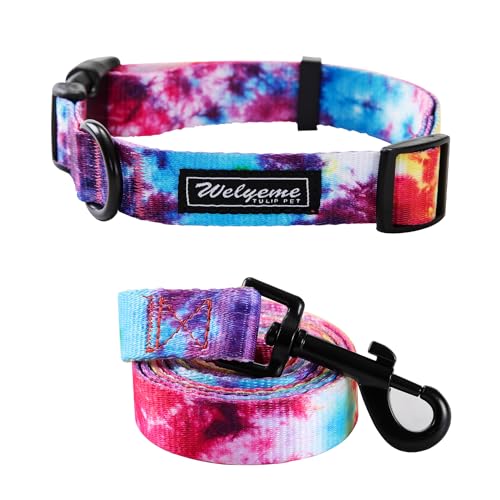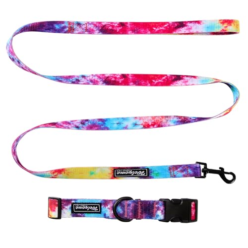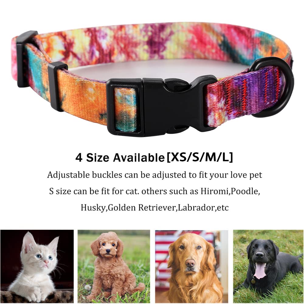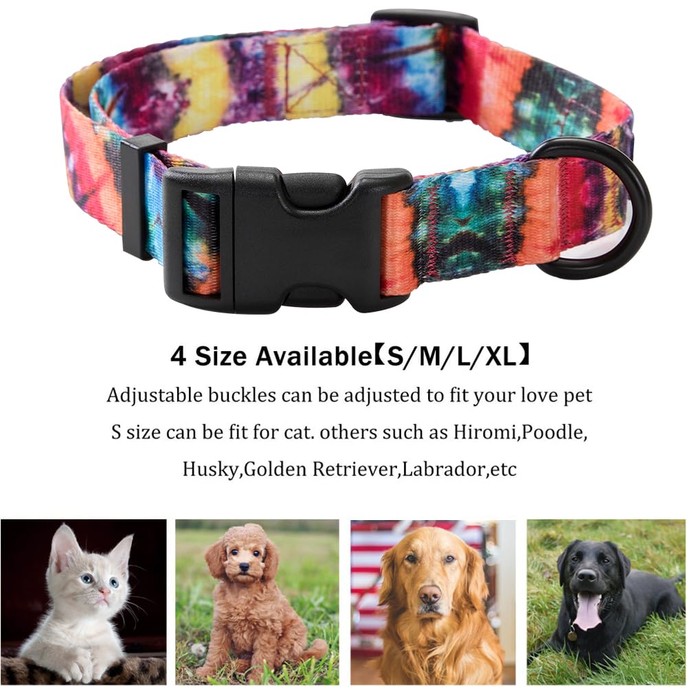 Tie Dye Dog Collar Pet Funny Dog Leash Set for Small Medium Large Dogs Tie Dye Collars (S(9.8'' - 12''))