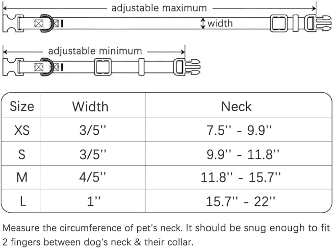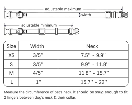 - ❤️ [HIGH QUALITY]—Made of High-quality Polyester, soft and comfortable to pet's neck, a stainless steel D-ring for tag and leash attachment, and a secure plastic side release buckle for easy one handed quick release.